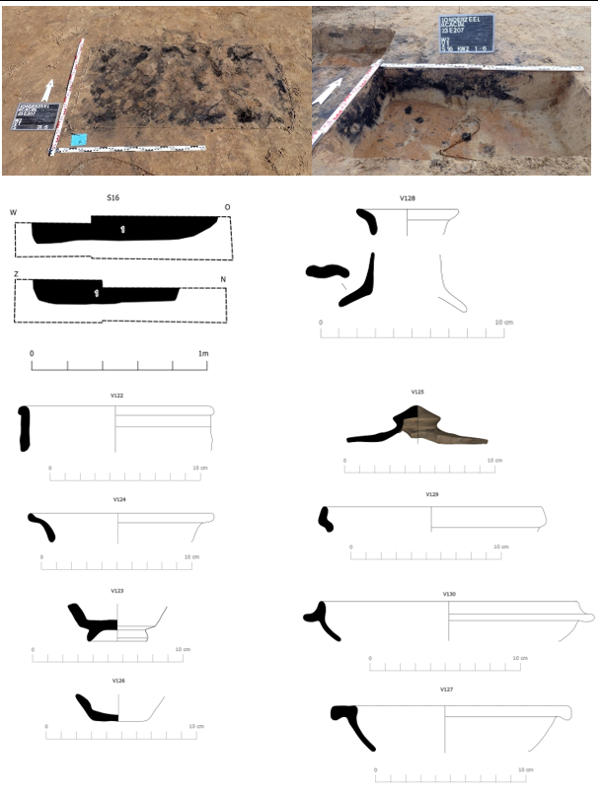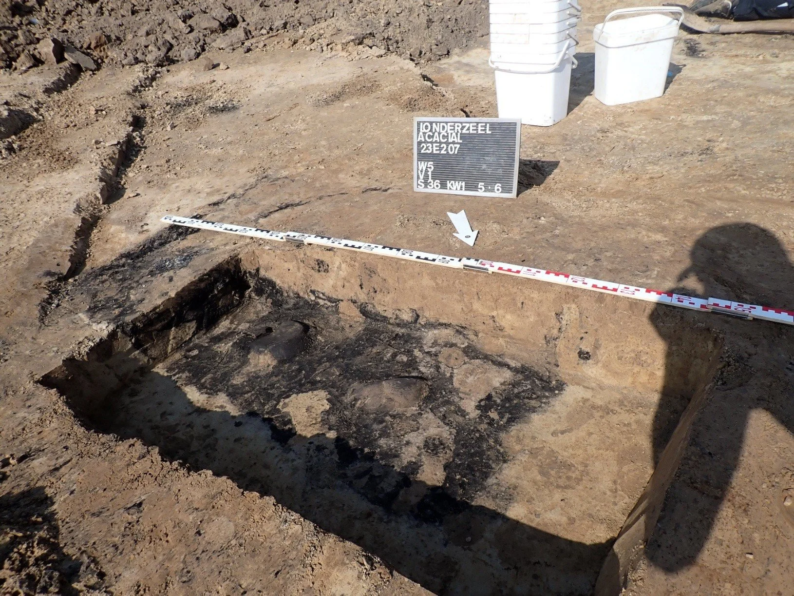 Figuur 7: Foto van een brandrestengraf tijdens de opgraving met in situ grafgiften.