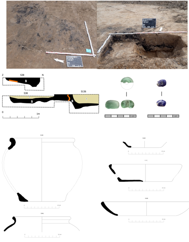 Onze archeologen troffen in het noorden van het projectgebied een nederzetting aan met een hoofdgebouw, enkele kleinere bijgebouwen en een greppel die het geheel afbakende. Het hoofdgebouw is van het huistype IIC en wordt gedateerd tussen 50 en 200 na Chr. Dit houten gebouw is éénschepig met een kruisvormig verspreide krachtenverdeling en drie traveeën. Bij het bestuderen van dit plattegrond werden enkele kleinere kuilen aangetroffen die het oorspronkelijk gebouwplattegrond oversnijden, mogelijk duidend op kleine aanpassingen of reparaties. Binnen het gebouw werd handgevormd aardewerk gevonden, wat doorsnee werd gebruikt voor alledaagse activiteiten zoals koken, eten en het bewaren van goederen.