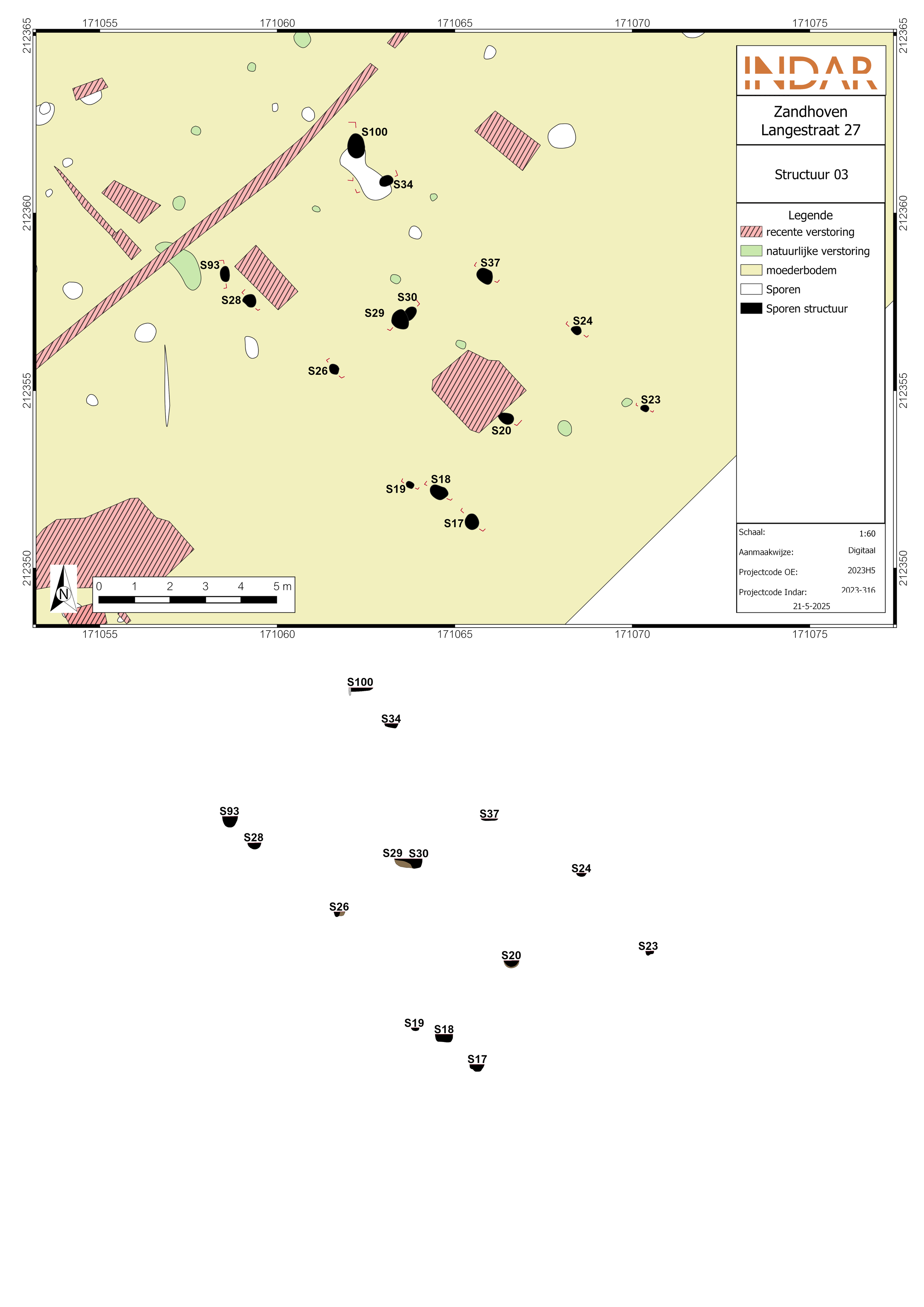 Net ten noorden van de hierboven beschreven structuur werd een tweede gebouwplattegrond aangetroffen. Deze was gelijkaardig georiënteerd en mat 14,6 bij 10 m. De structuur is driebeukig en rechthoekig in grondplan, typerend voor de 9e eeuw. In totaal werden negen scherven aangetroffen waaronder wat lokaal handgevormd aardewerk met kwarts én ijzerinclusies. Eén wandfragment was afkomstig van een zogenaamde reliëfbandamfoor, grote eivormige potten gedecoreerd met geradstempelde en opgelegde kleibanden. Ze werden vanuit het Rijnland verspreid in de periode 830-880 n. Chr.